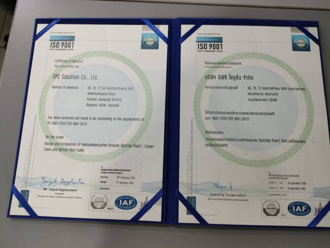 ได้รับการรับรองเอกสารรับรองระบบบริหารงานคุณภาพ หรือ ISO 9001 เรียบร้อยแล้ว